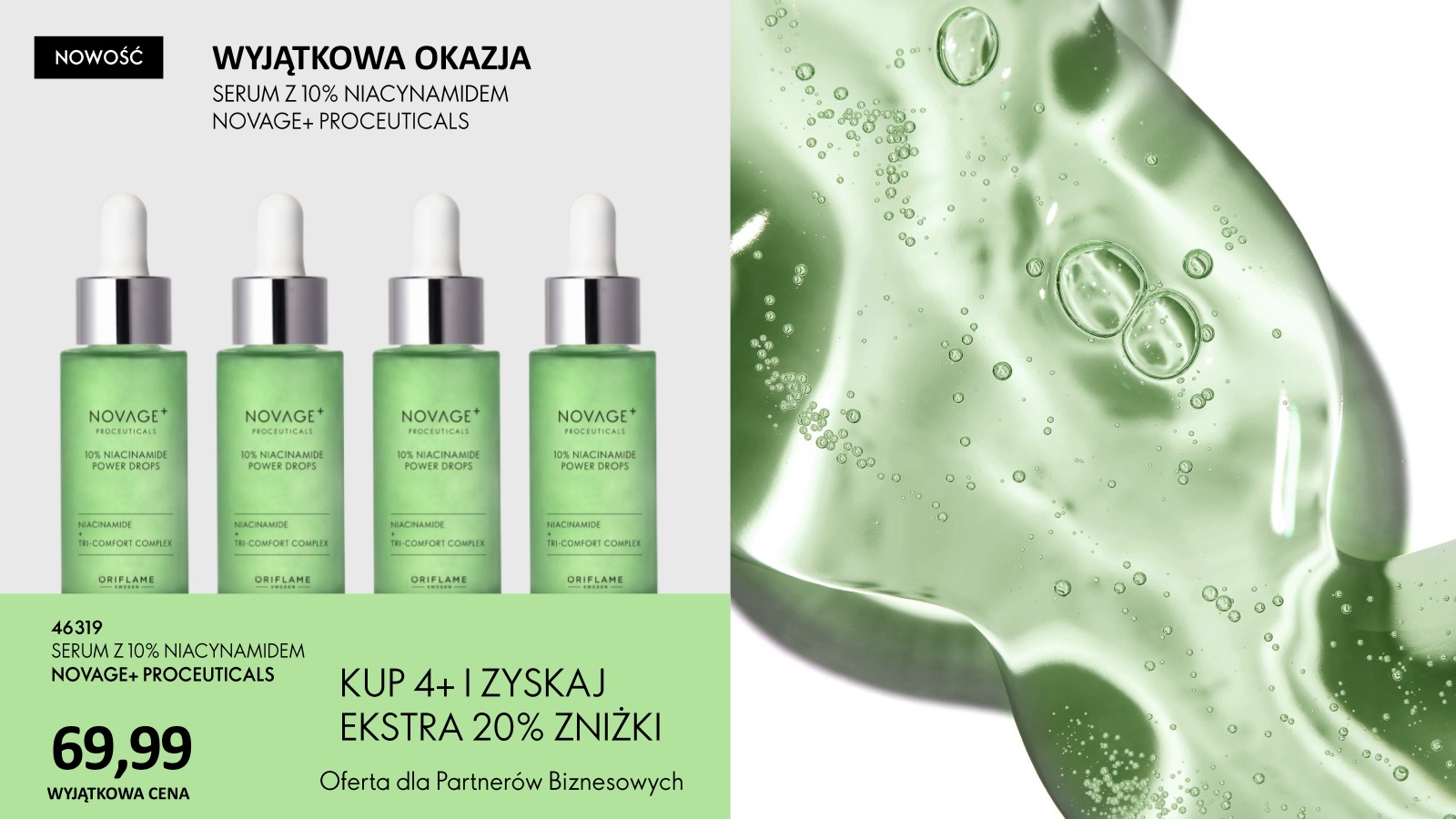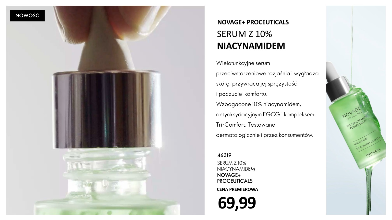 Sięgnij po codzienną dawkę energii dla skóry, by wyglądała zdrowo i promiennie. Uzyskaj ją dzięki serum z 10% niacynamidem Proceuticals, wzbogaconym antyoksydacyjnym EGCG (pochodzącym z zielonej herbaty) i kojącym kompleksem Tri-Comfort, dającymi natychmiastowe i długotrwałe rezultaty – rozjaśnienie, wygładzenie i jędrność.