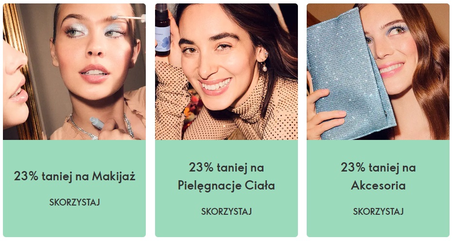 Teraz wszyscy nowi Klubowicze i Partnerzy w Klubie Oriflame otrzymują DODATKOWE 23% ZNIŻKI NA WSZYSTKIE PRODUKTY ze świątecznego katalogu! Ofertą nie są jedynie objęte zapachy premium i ich zestawy oraz Beauty Collagen.