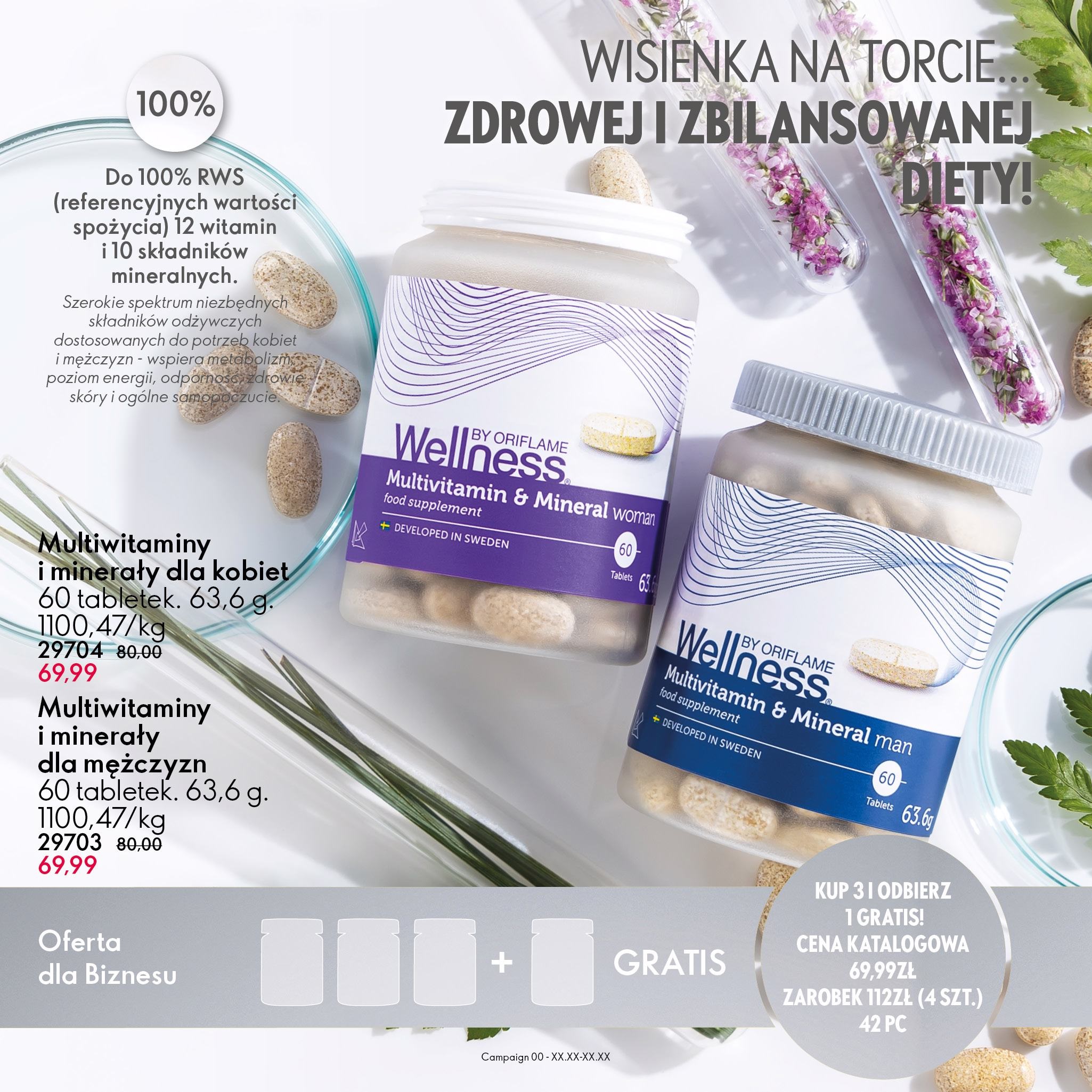Wysokiej jakości naturalne suplementy diety i produkty spożywcze Wellness by Oriflame służą temu, by pomóc stosującym je osobom osiągnąć stan wellness, ponieważ każdy może zmienić swoje życie na lepsze, wprowadzając małe zmiany codziennie.